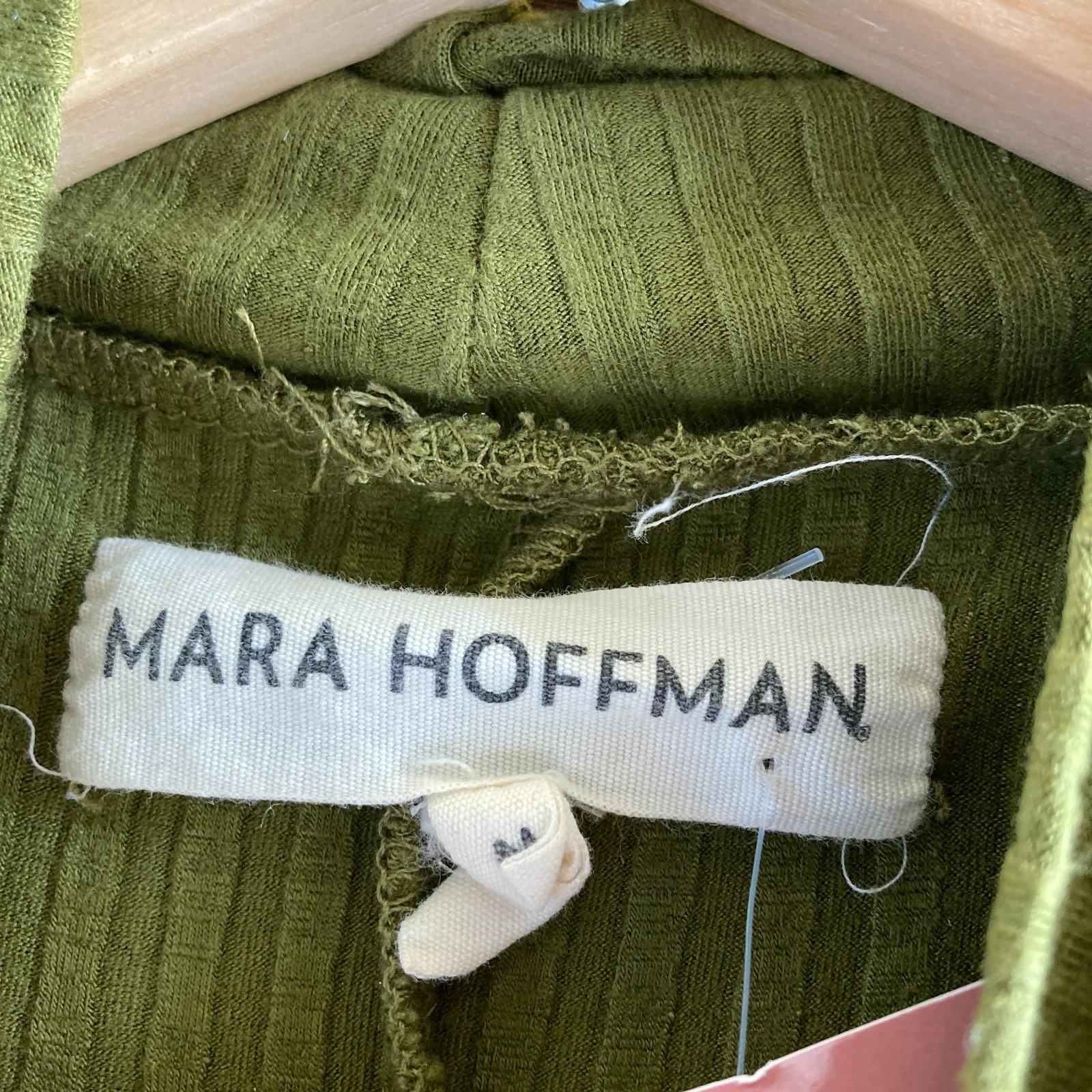 M - Mara Hoffman Olive Green Flo Rib Knit Long Sleeve Tie Front Dress 0410KB