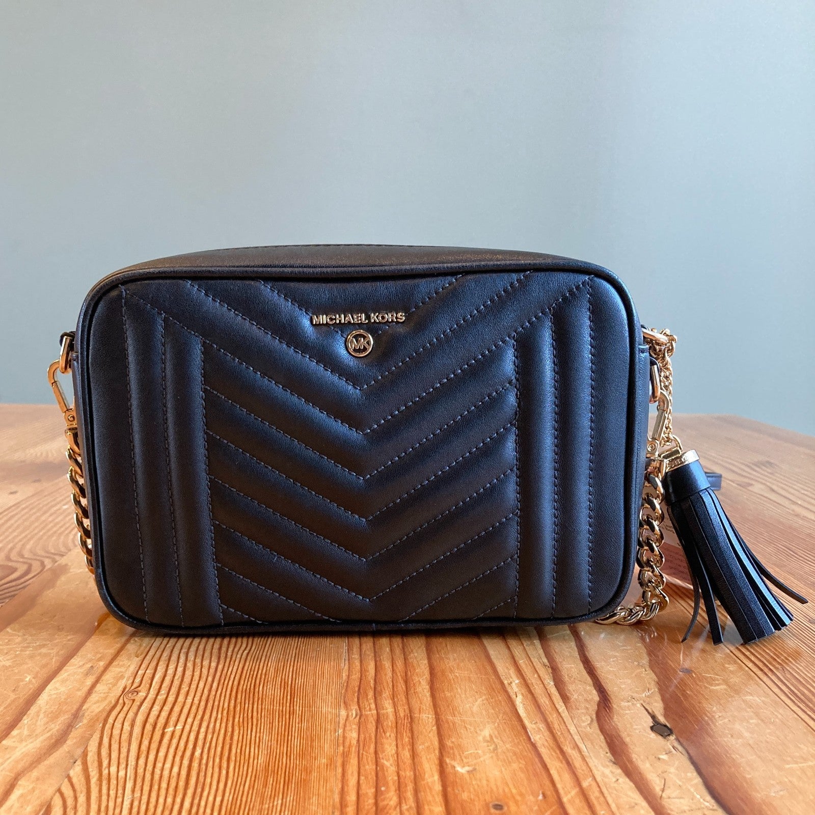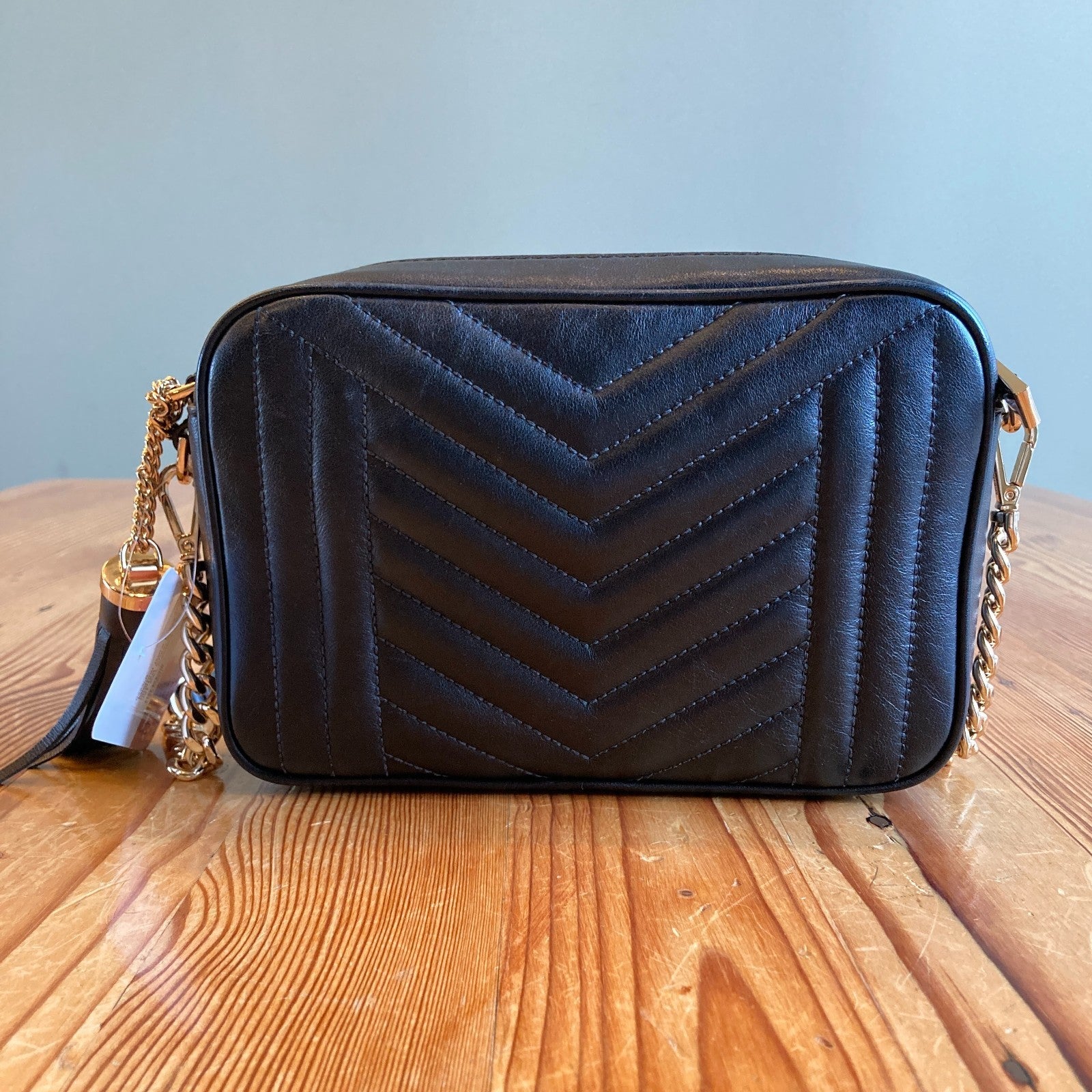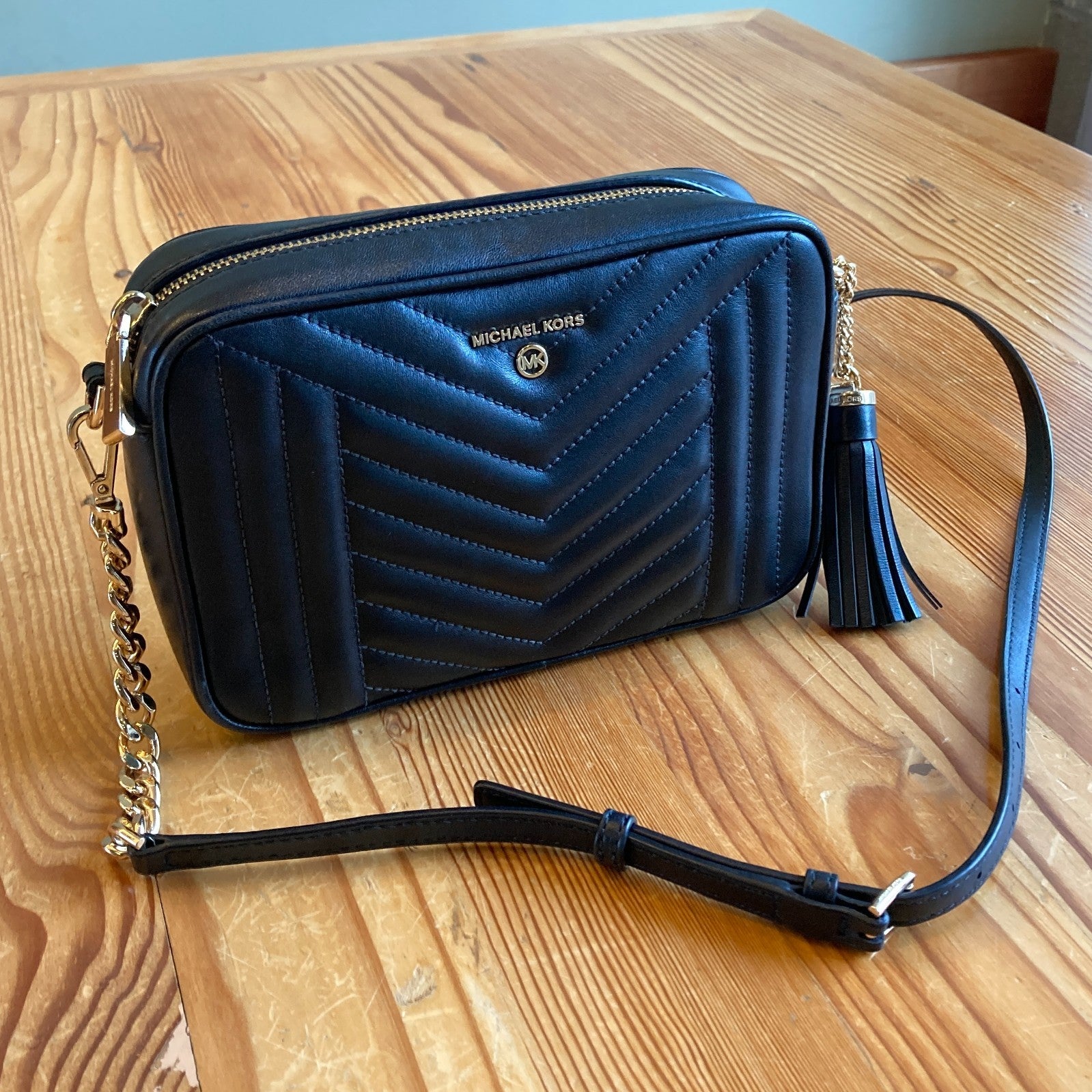 Michael Kors Black Quilted Chevron Leather Jet Set Camera Bag Purse EUC 0223LR