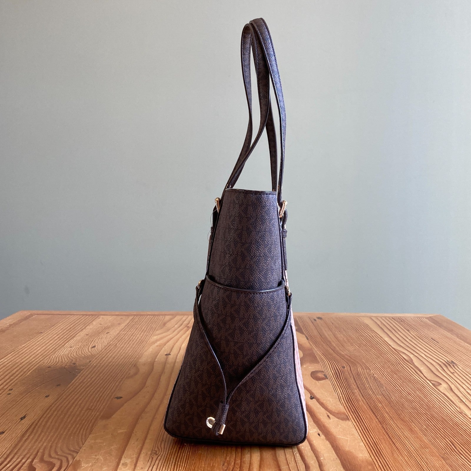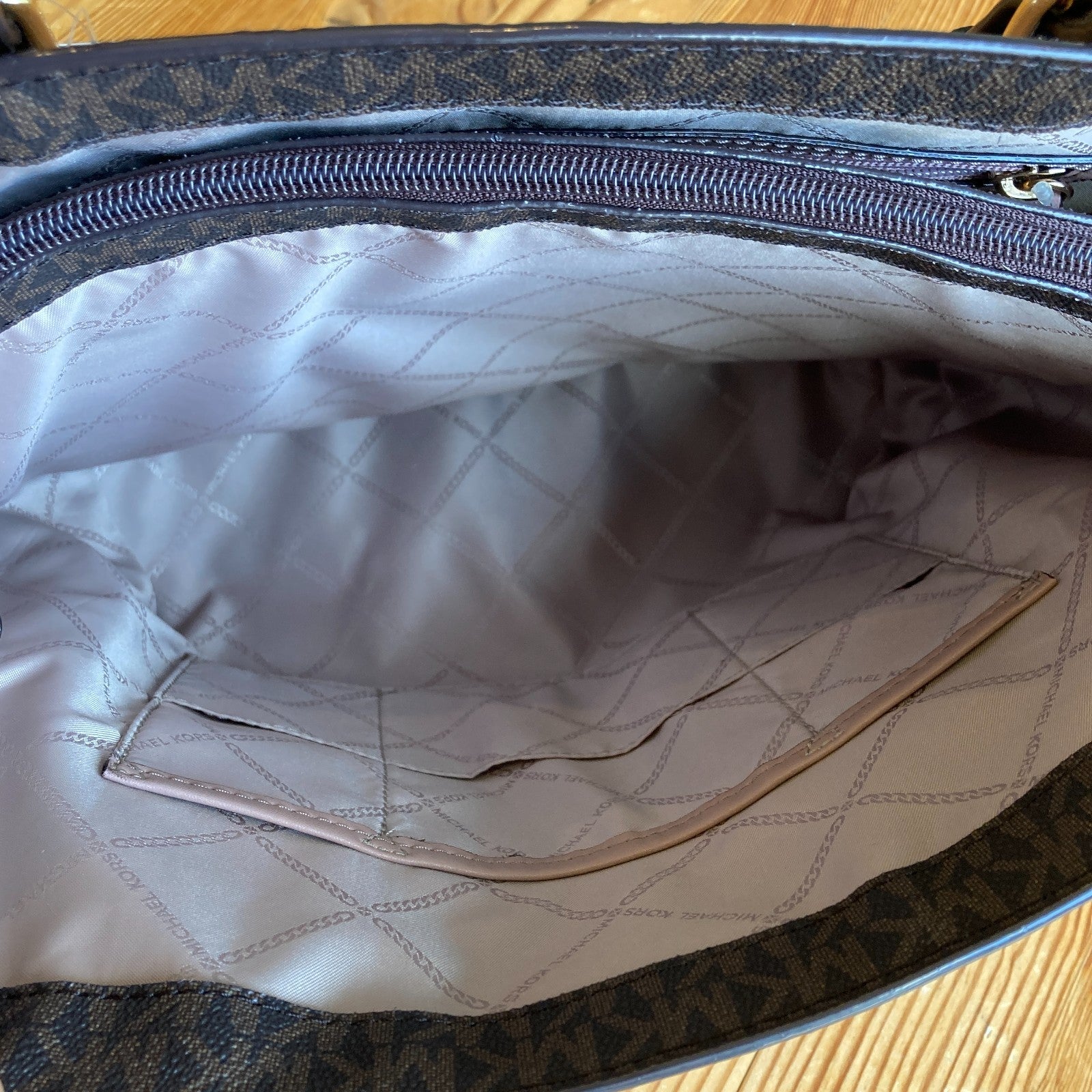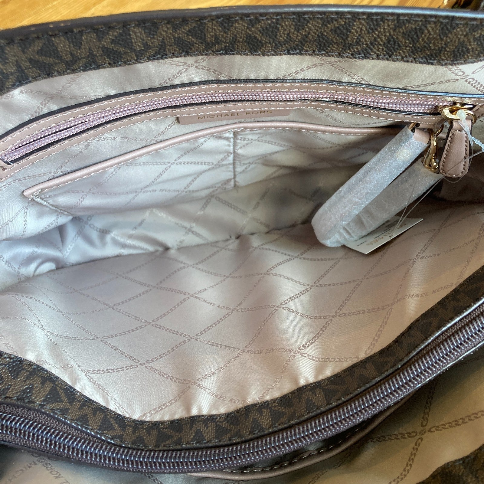 - Stylish design featuring an allover 'MK' logo pattern
