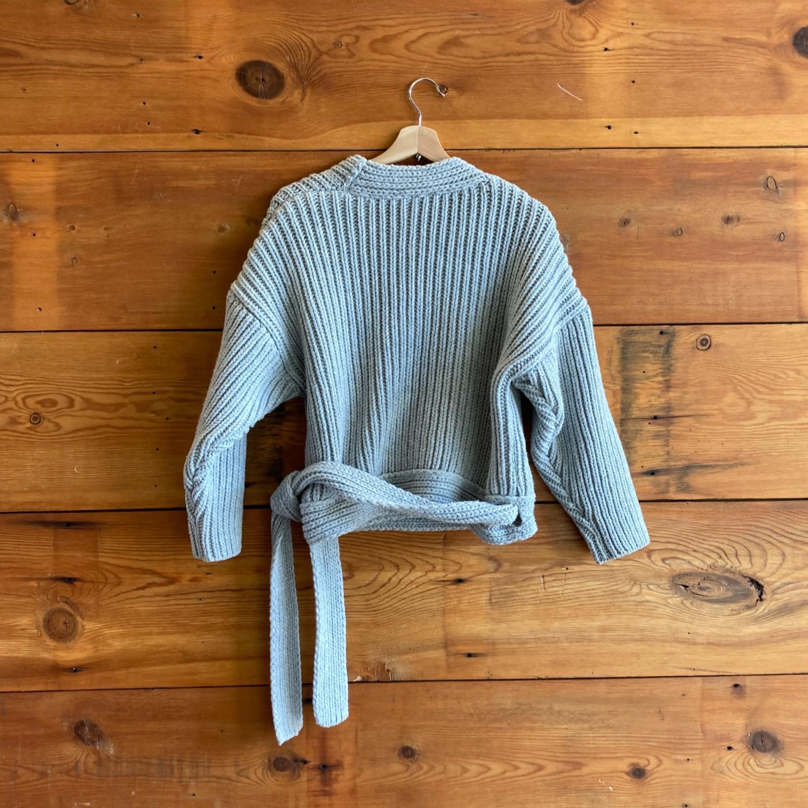 O/S - Baserange Gray Chunky Knit Ribbed Wrap Cropped Wool Sweater 0901CC