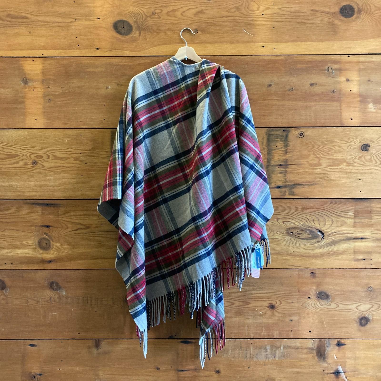 Pendleton 100% Wool Plaid Wrap Shawl Poncho Cape Plaid w/ Fringe NEW 0705SG