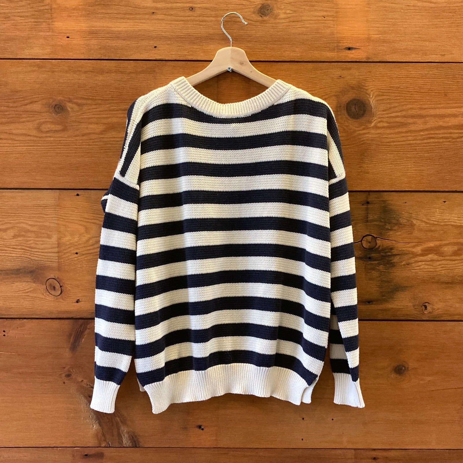 S - Emerson Fry $198 Navy & White Striped Carolyn Pullover Knit Sweater 0206BS