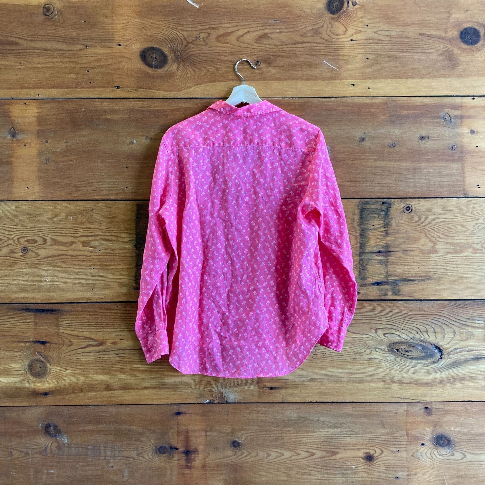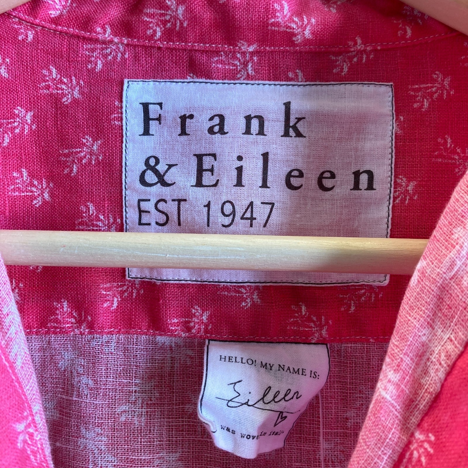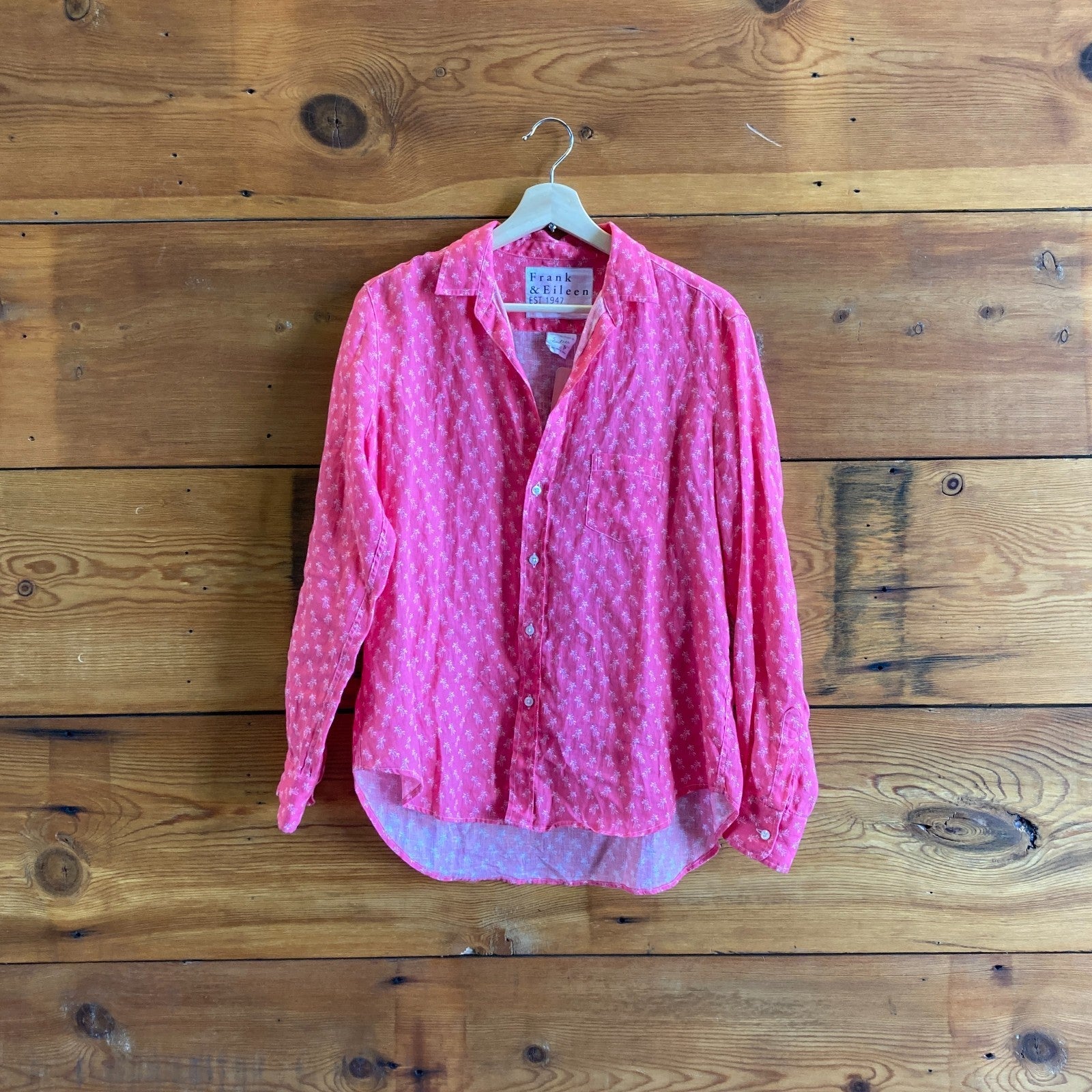 S - Frank & Eileen Pink Tropical Pattern Linen Eileen Button Up Shirt Top 0728JB