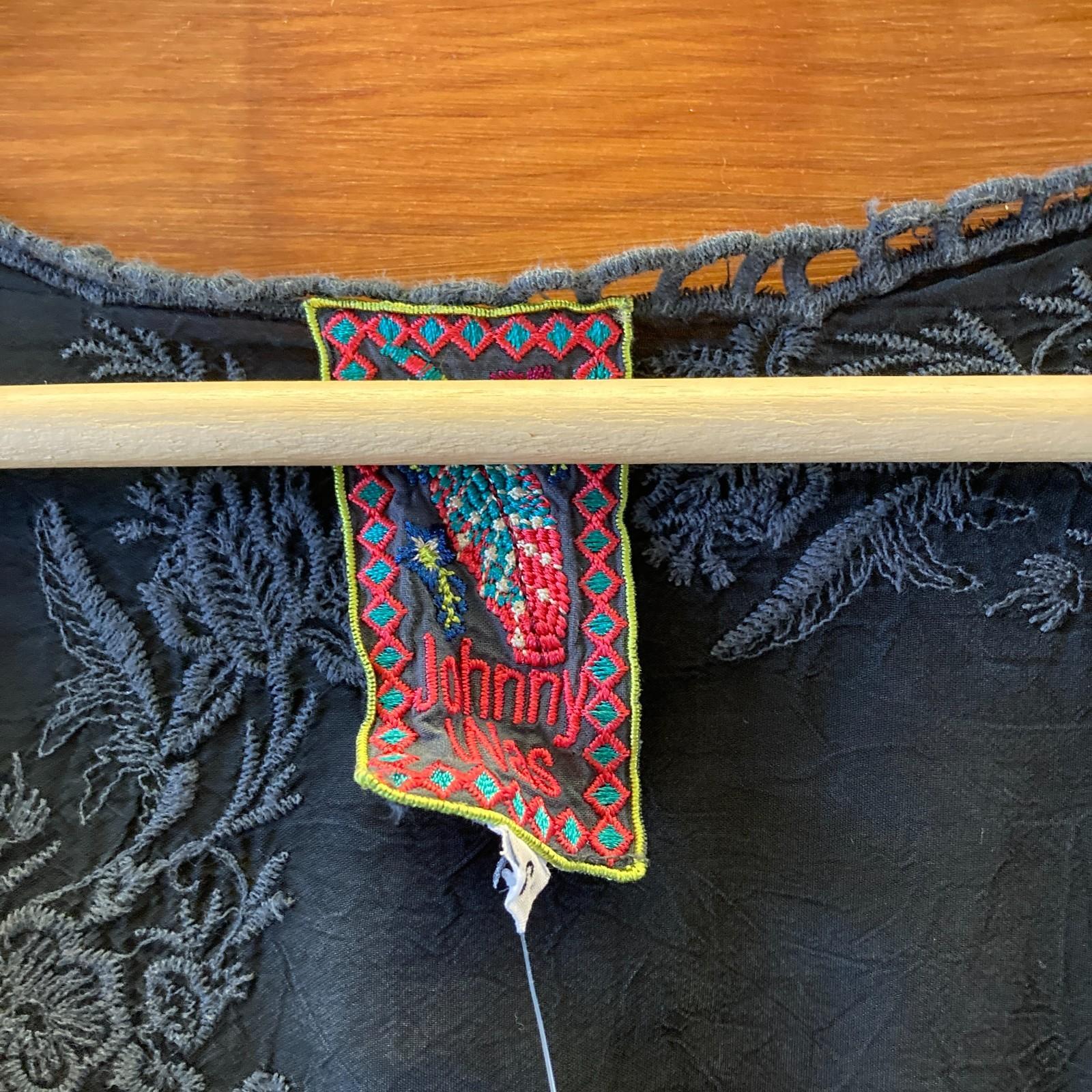 S - Johnny Was Navy Blue Embroidered V Neck 3/4 Sleeve Tunic Mini Dress 0719JK