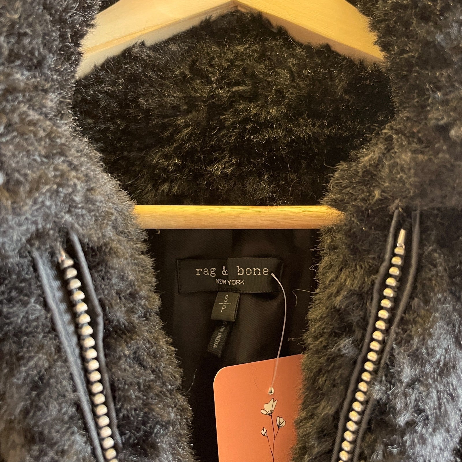 S - Rag & Bone Black Faux Fur Nikki Zip Front Bomber Jacket 1125KG