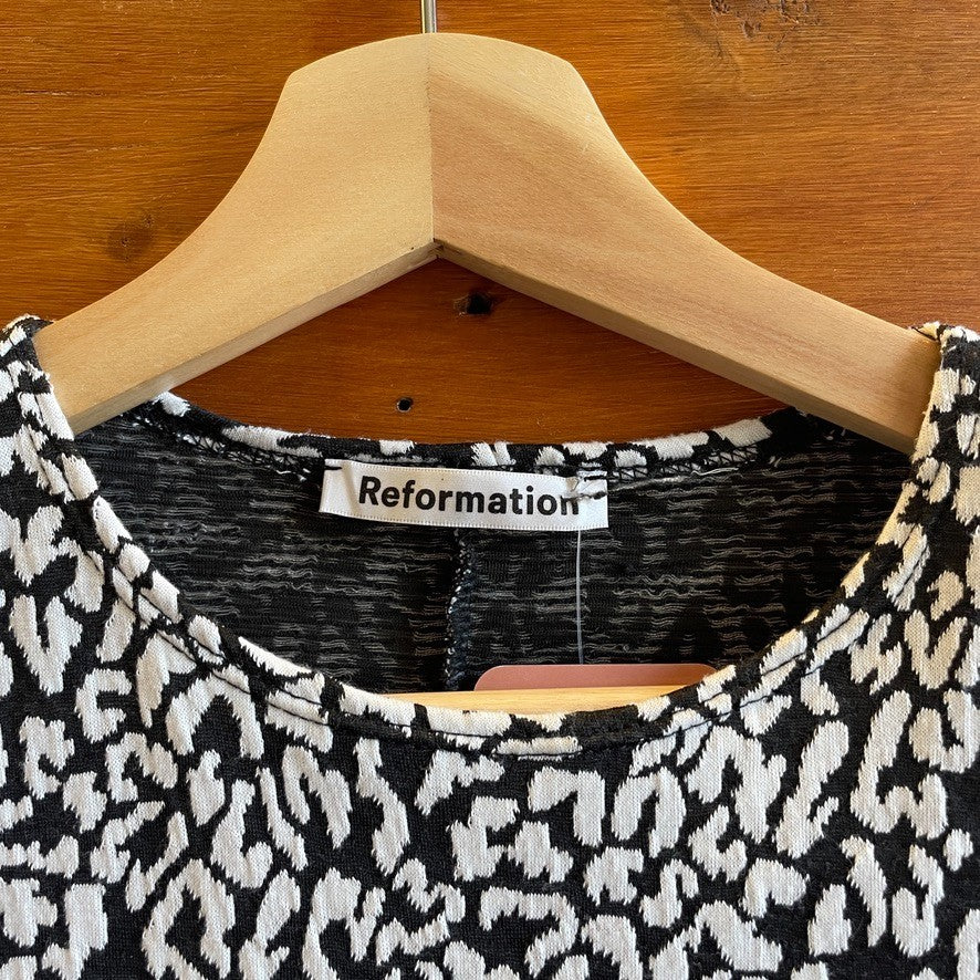 S - Reformation Black White Pattern Long Sleeve A-Line Cheetah Dress 0801SM