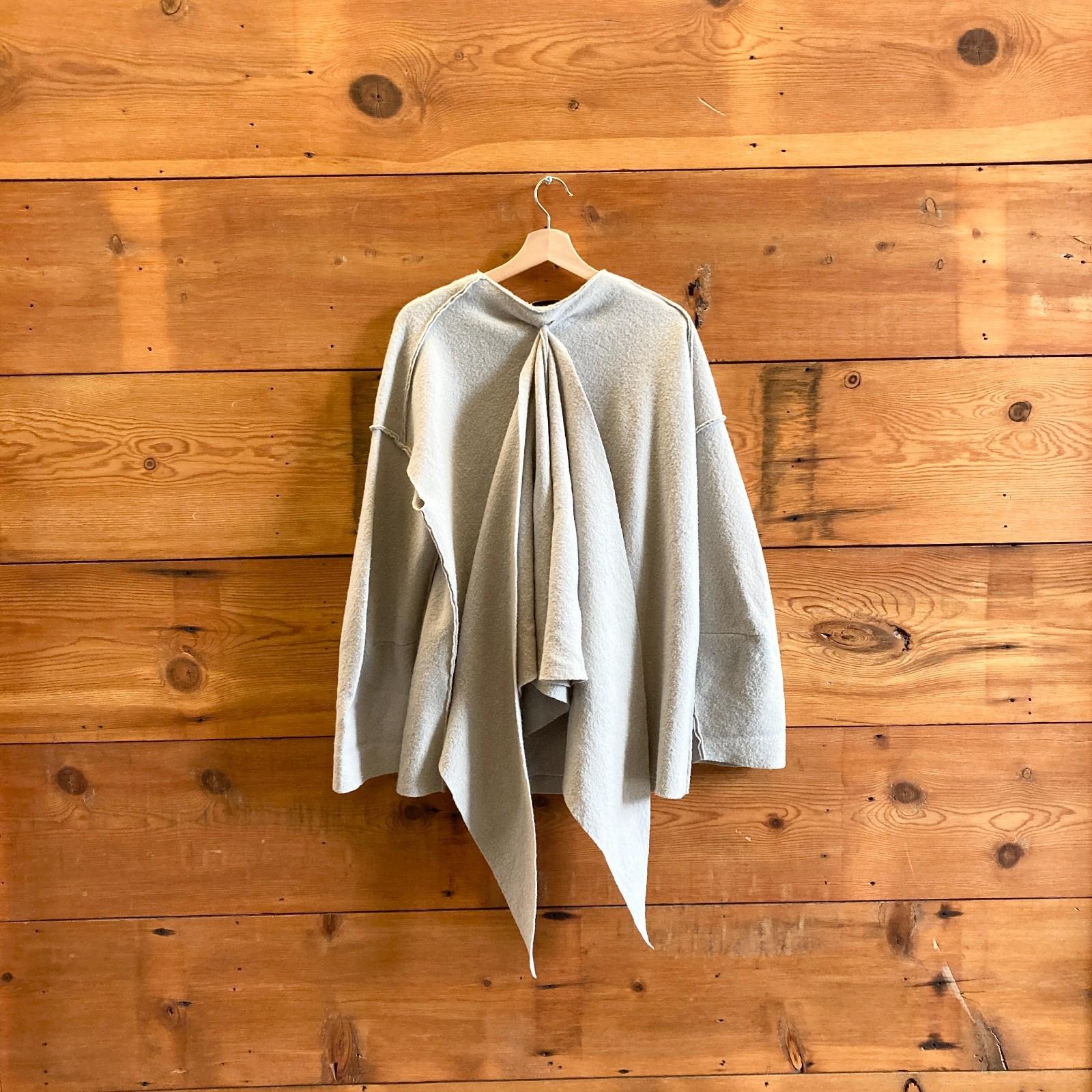 - Buttoned cardigan featuring a detachable layered triangle scarf, crafted from boiled merino wool. Designed with a relaxed silhouette and a below-hip length, it features dropped shoulders, exposed seams and curved sleeves. Side buttons and armhole cutouts add versatility for ease of movement and multiple styling options.