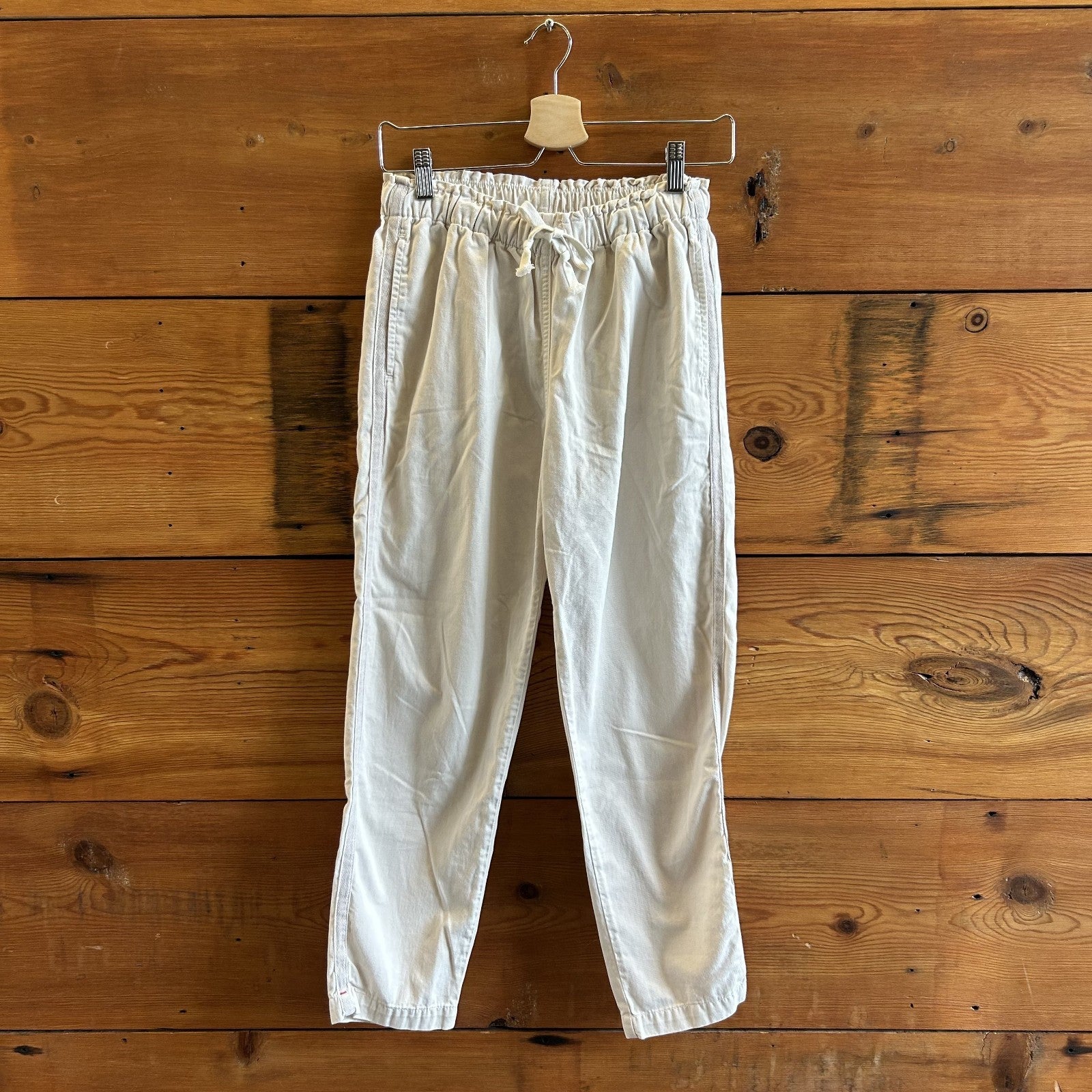 S - Xirena Cream Drawstring Elastic Waist Rex Twill Straight Leg Pants 0830AD