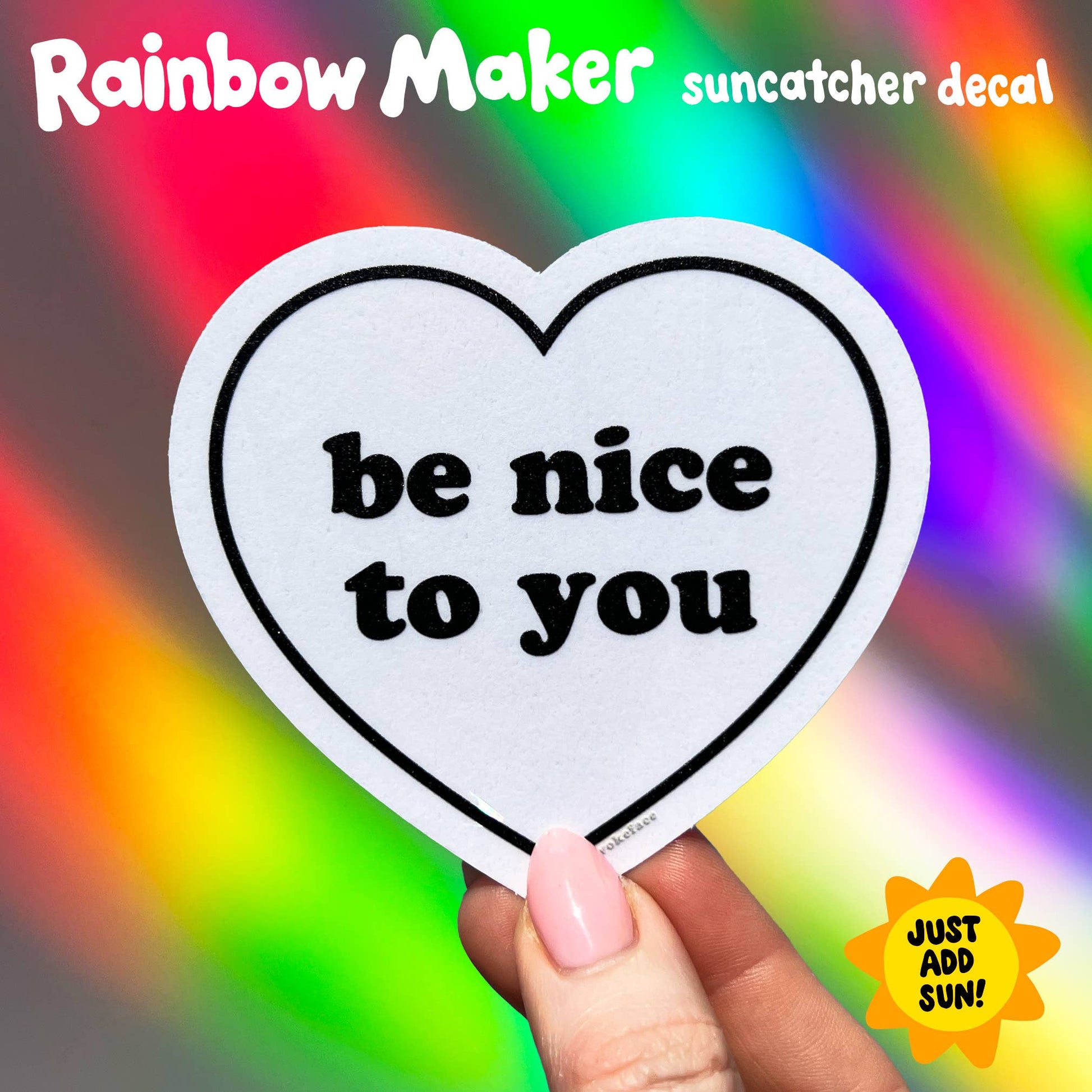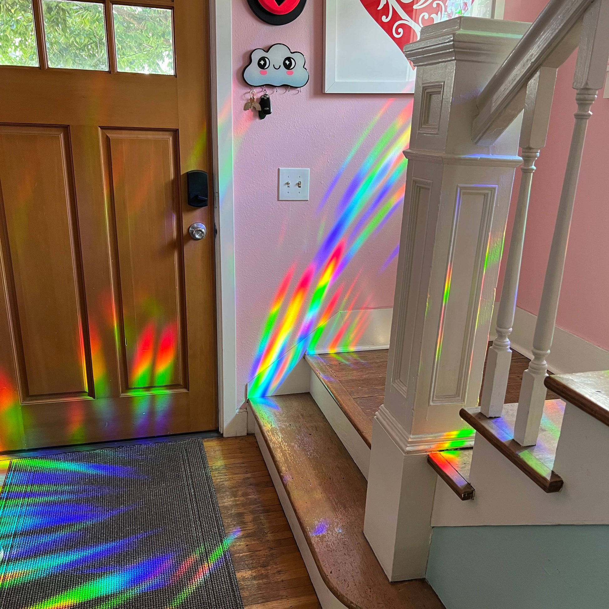 Wokeface Rainbow Maker Sun Catcher Decal is made of a specialized light refracting vinyl. When sunlight shines through it, vivid rainbows appear!