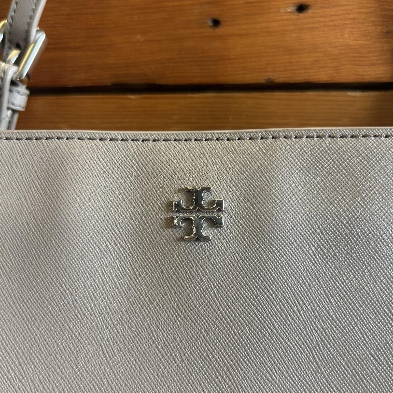 Tory Burch Grey Large Leather York Buckle Tote Shoulder Bag Purse 0131AG