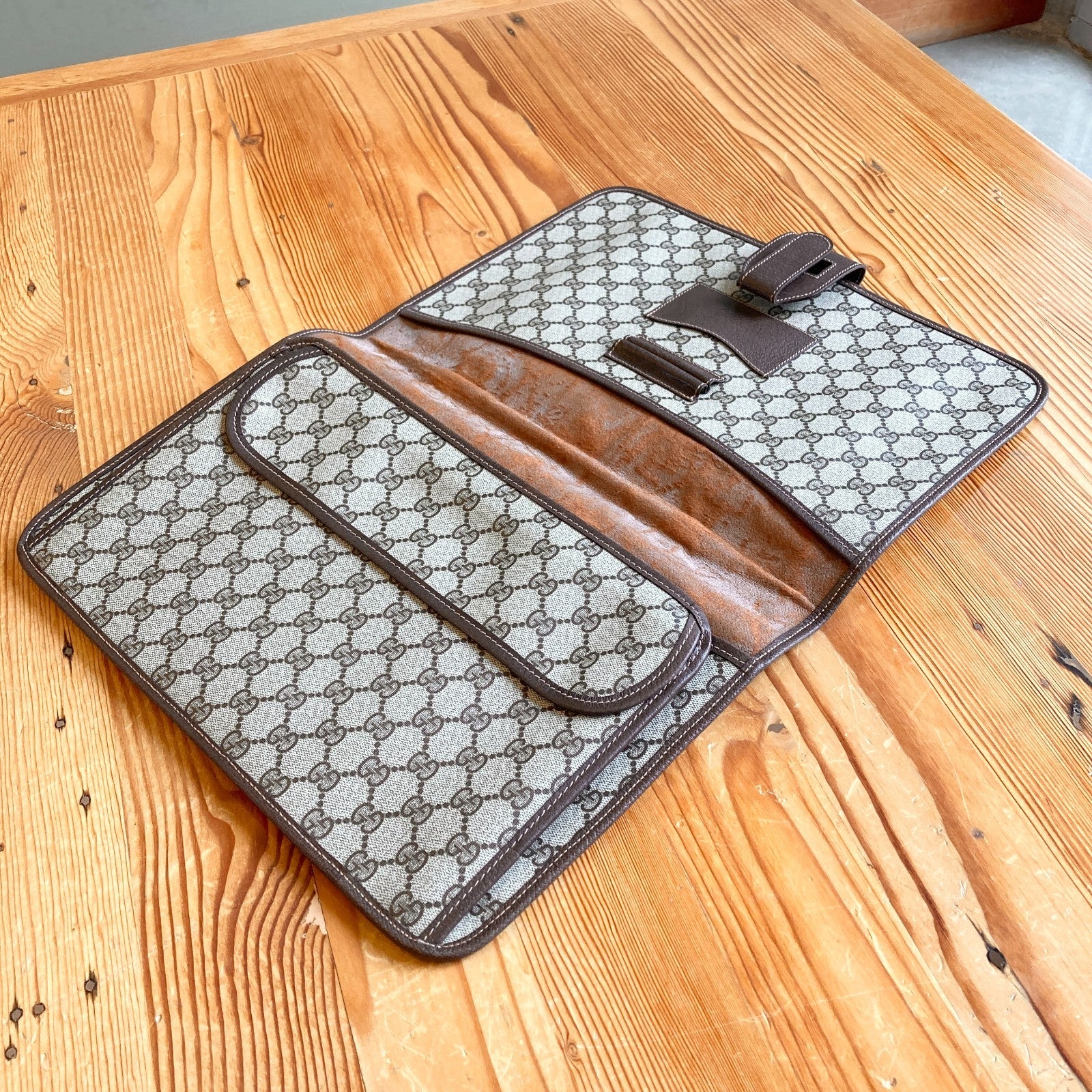 Vintage Gucci GG Monogram Supreme Sherry Web Ophidia Portfolio Laptop Bag 1227EL