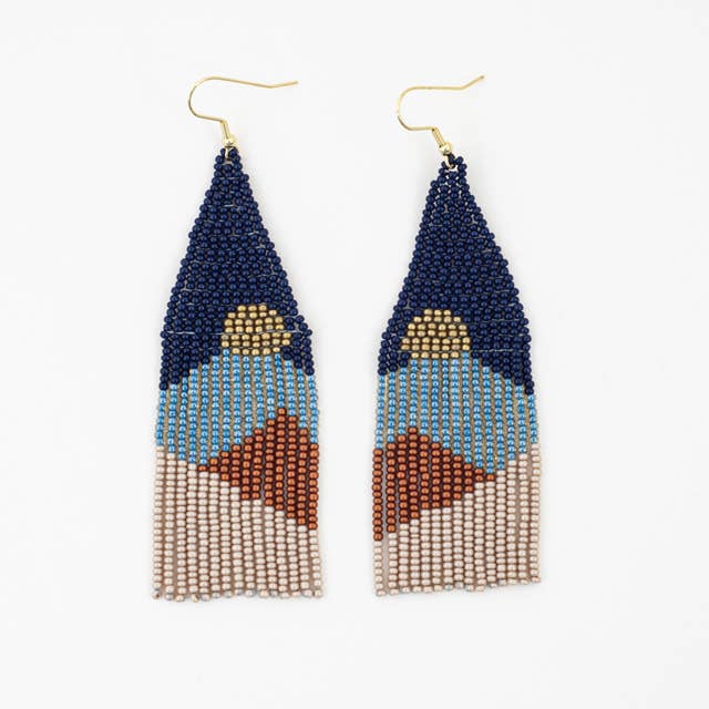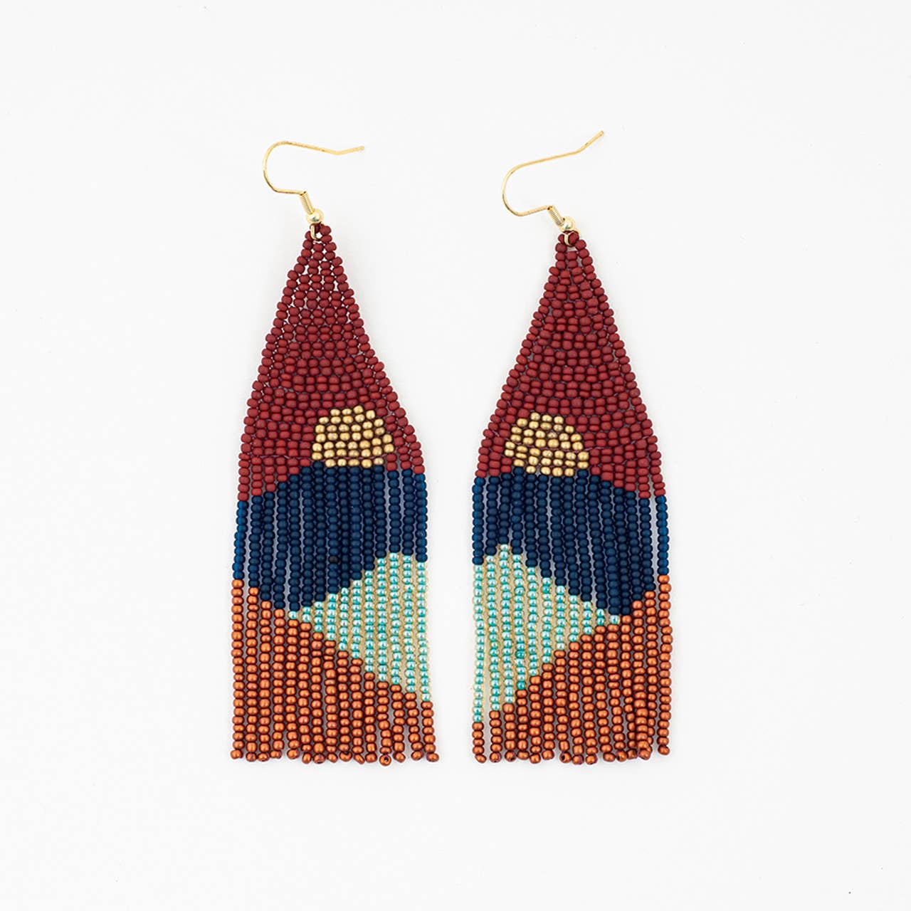 The Graphic Fringe Beaded Earring is handmade in a fair trade workshop in Guatemala.