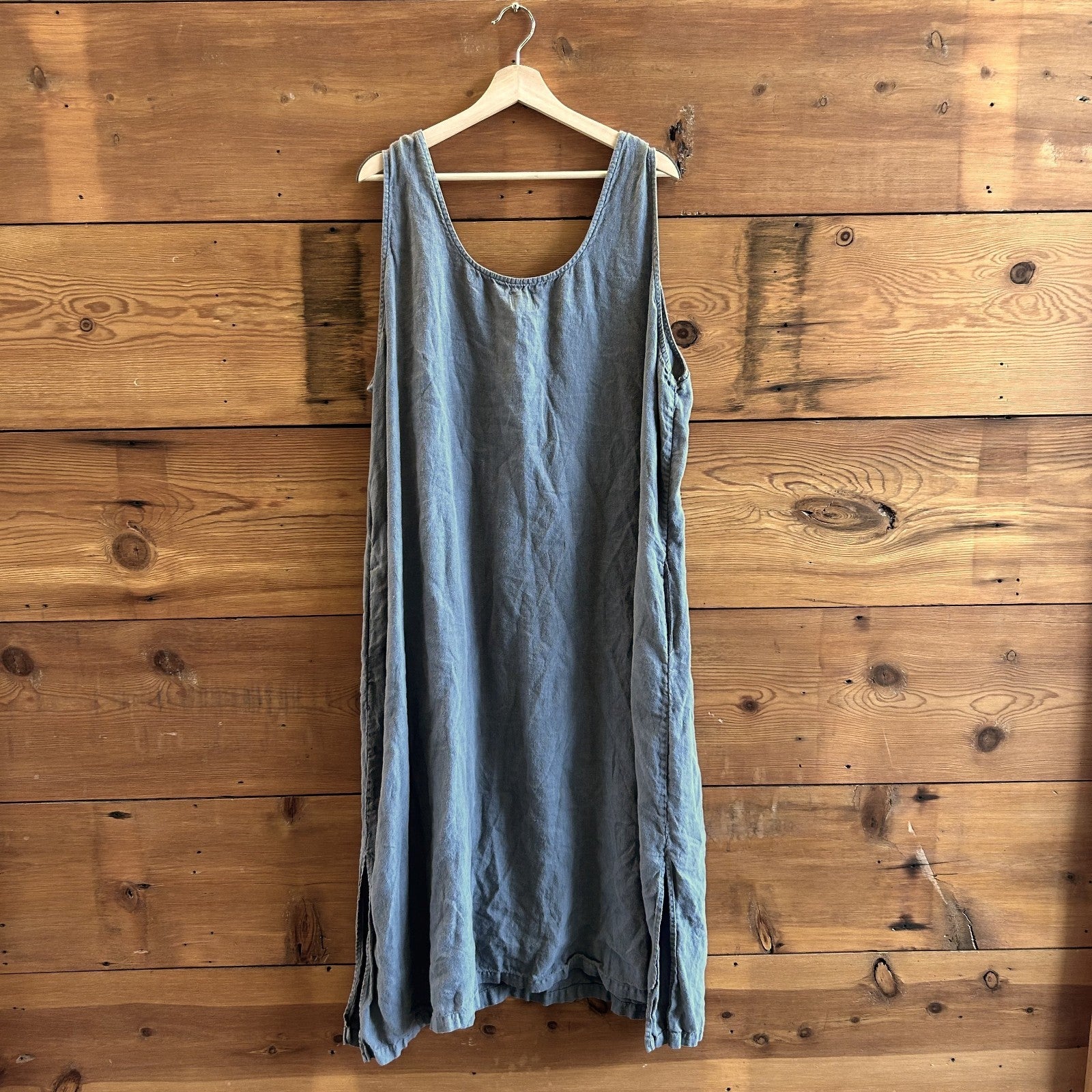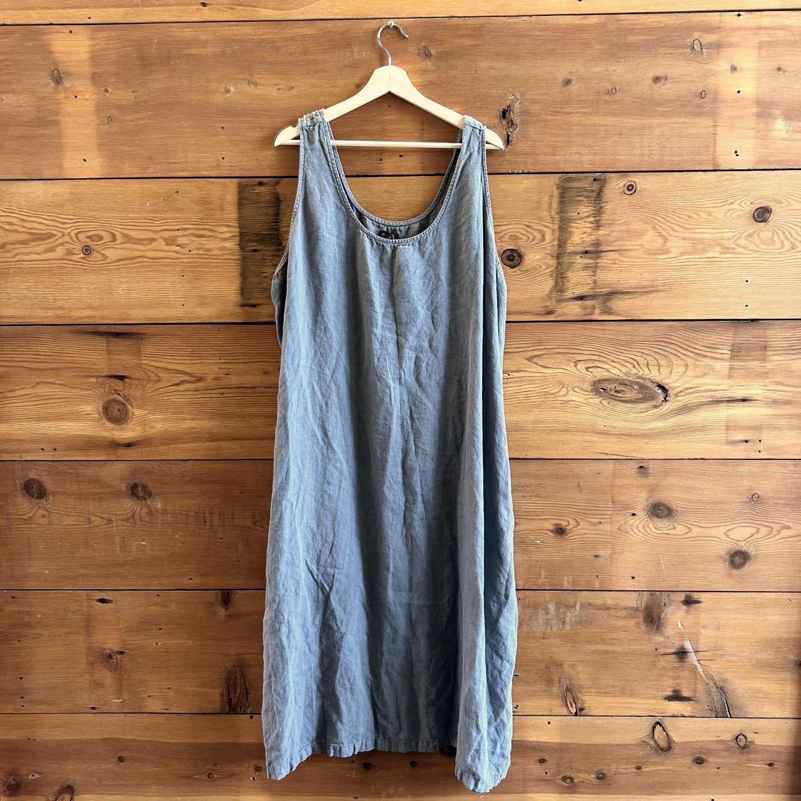 XL - Esby Blue Gray Sleeveless Linen Lagenlook Maxi Dress 0824DC