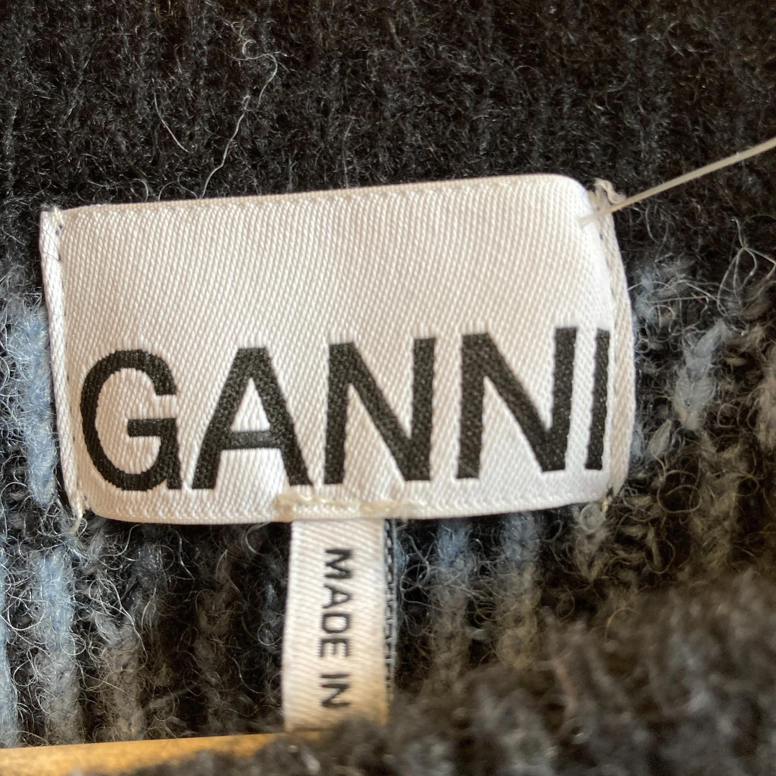 XL - Ganni Blue Black Smiley Alpaca Blend Balloon Sleeve Pullover Sweater 0720LP