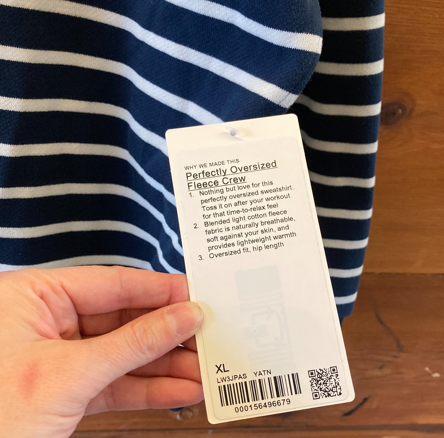 XL - Lululemon Navy Striped Fleece Perfectly Oversized Sweatshirt NEW 1206HP