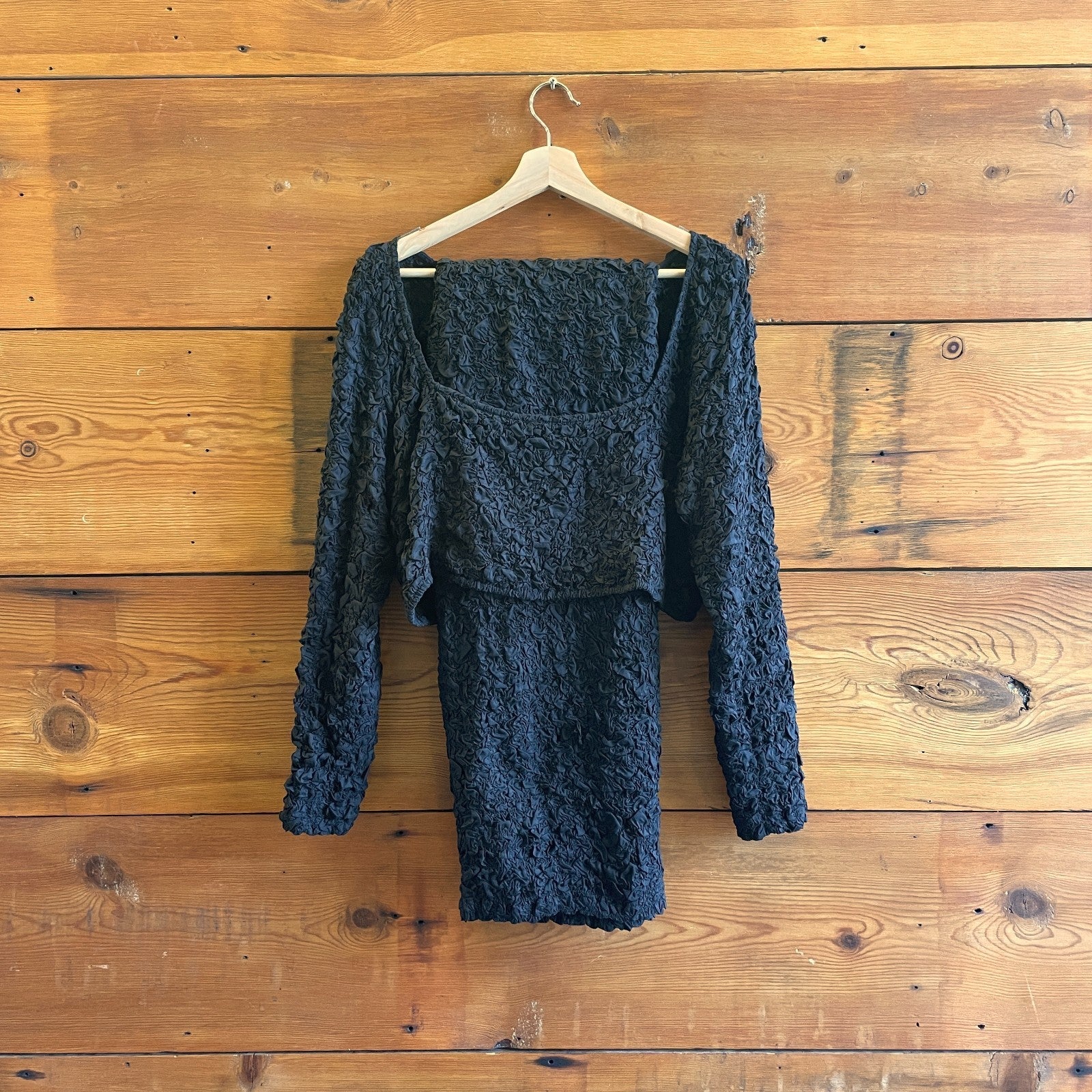 XL - Mara Hoffman Black Textured Long Sleeve Kiyoko Top & Skirt Set 0801JZ