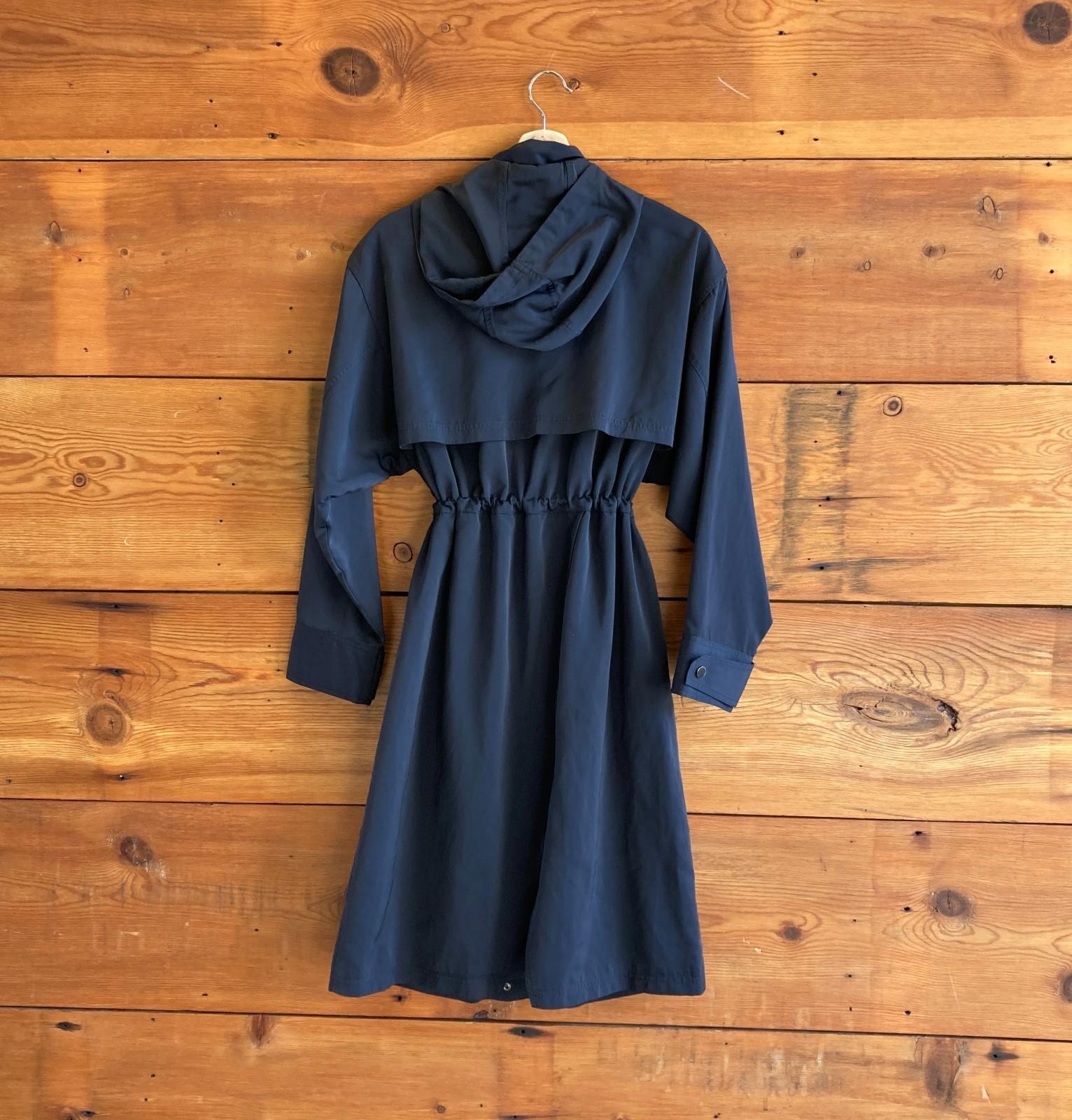 XS - Avec Les Filles Navy Blue Hooded Long Rain Coat Parka Jacket 0929JY