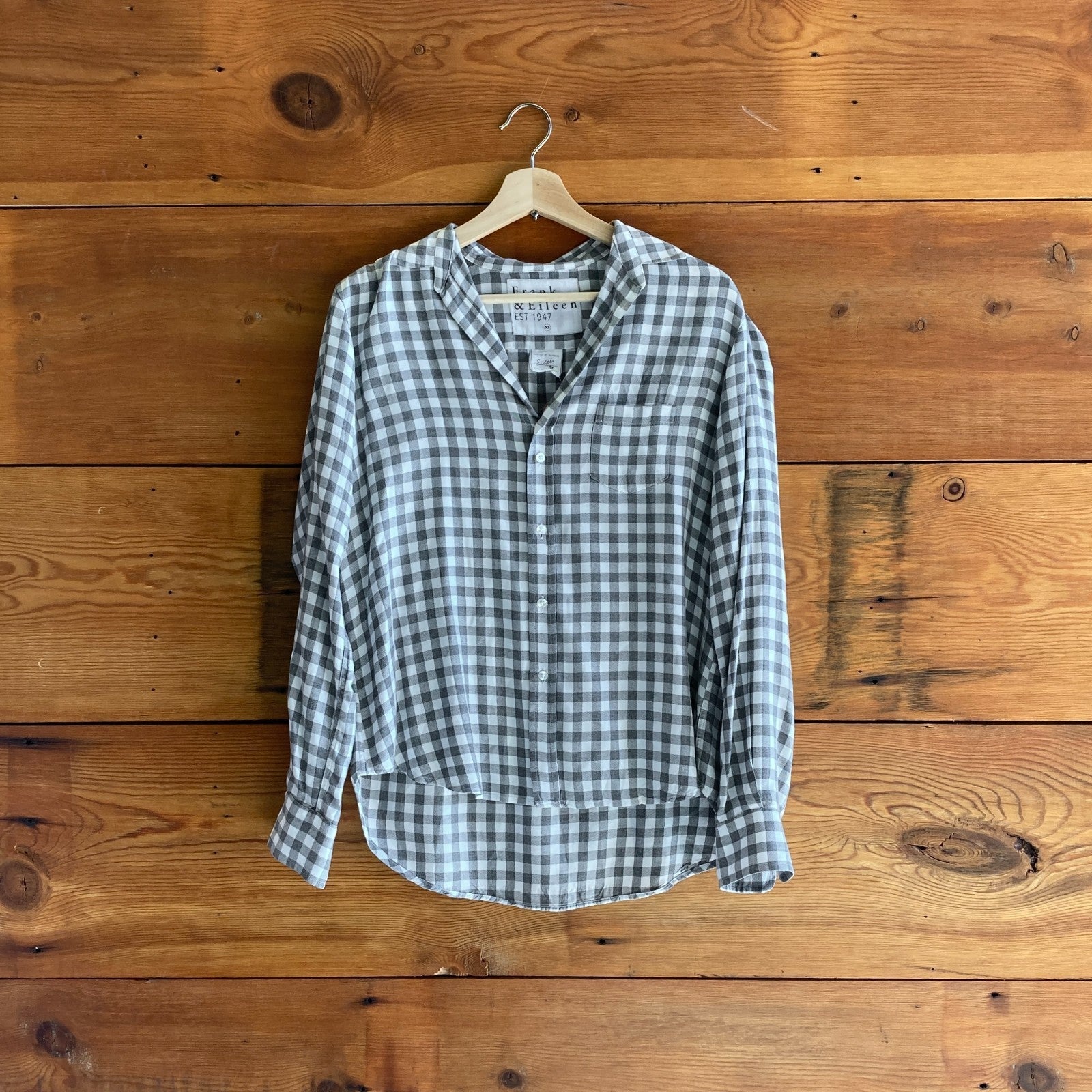 XS - Frank & Eileen Gray & White Gingham Plaid Button Up 'Eileen' Top 0124KG