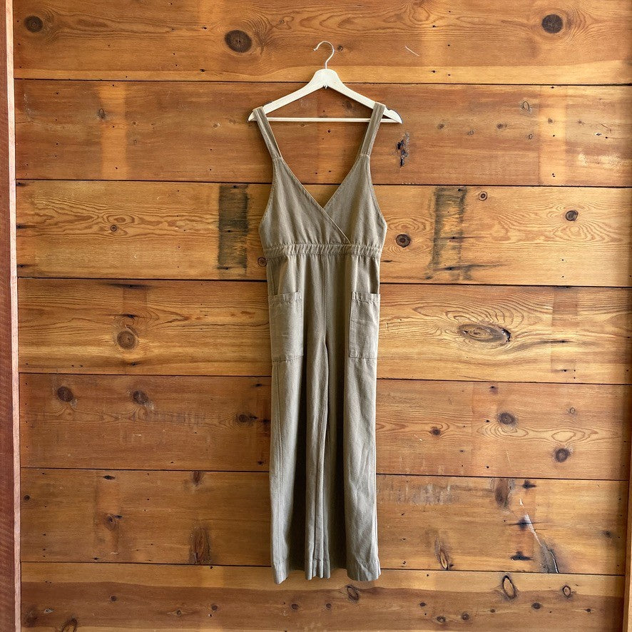 XS - Longway Calofornia Brown V-Neck Sleeveless Wide Leg Overalls 0312IG