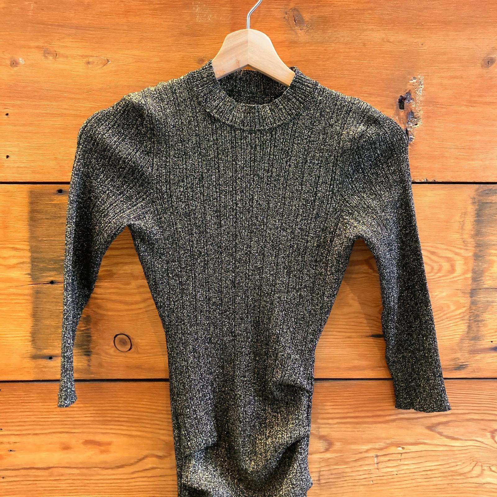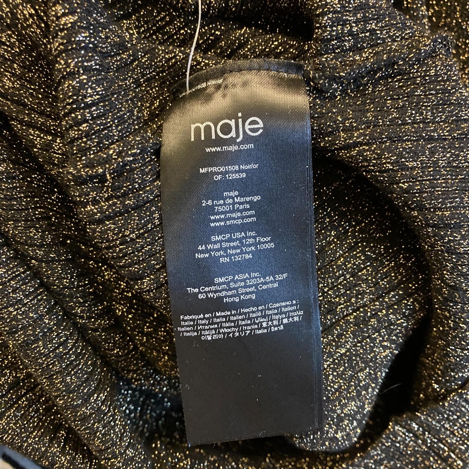 XS - Maje Black Gold Shimmer Stretch Fit Rimaldie Ruched Mock Neck Dress 0224DM