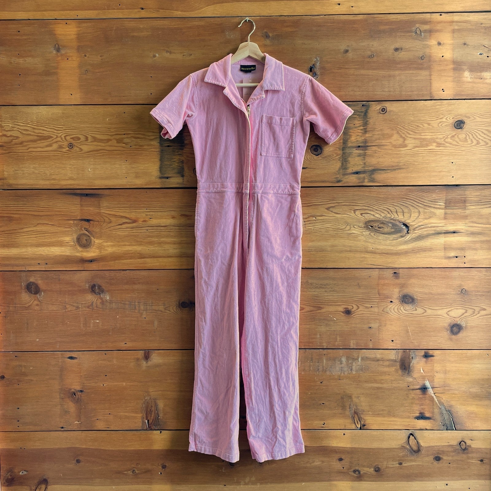 XS - Nooworks Pink Corduroy Short Sleeve Zip Front Jumpsuit Coveralls 0415AB