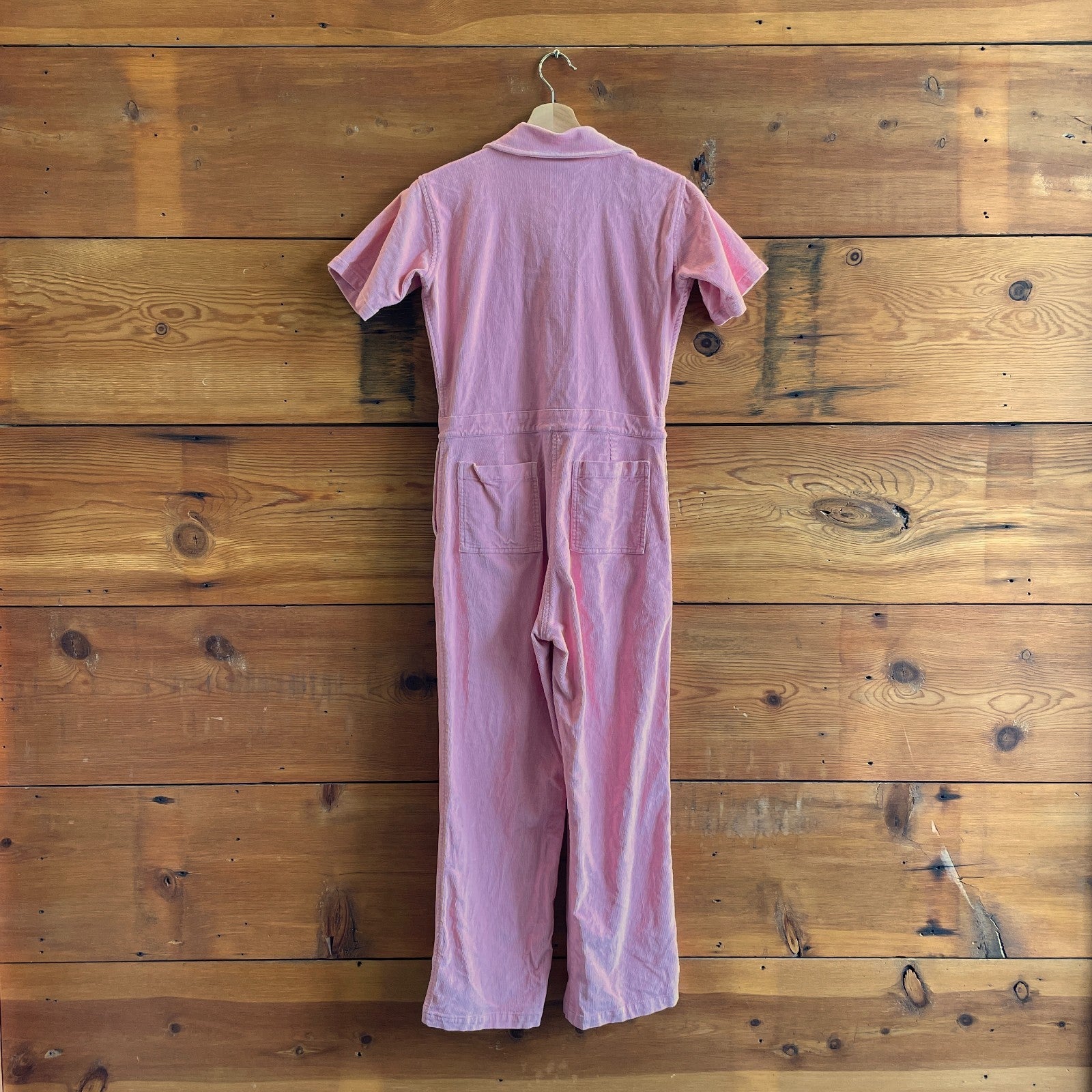- Incredibly in style and surprisingly easy to pull off. These pink corduroy coveralls display multiple pockets and a gold zipper down the front that allows this piece to be worn in multiple ways. The collared top and faux waistband gives it the ultimate cool girl look.